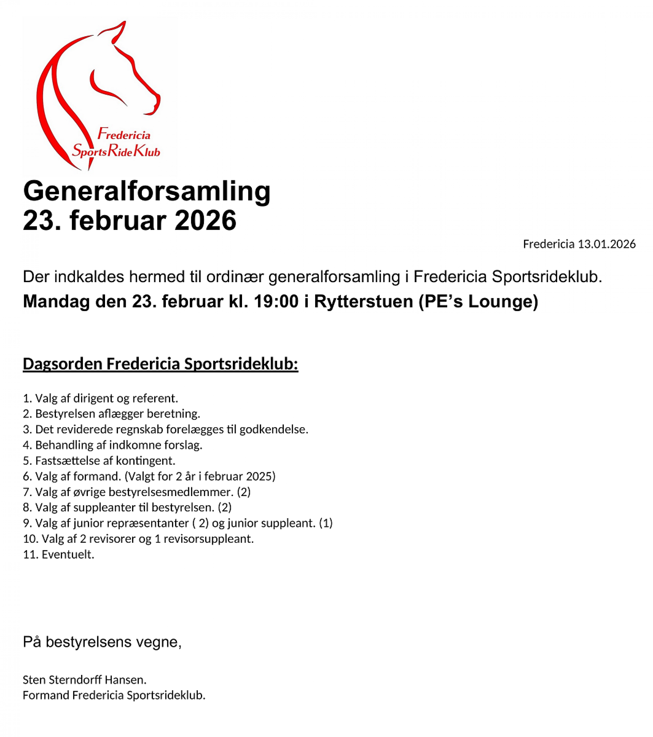 Ring: 30 63 51 60 (Winni Lauridsen) eller skriv: staevne@fredericiasportsrideklub.dk
